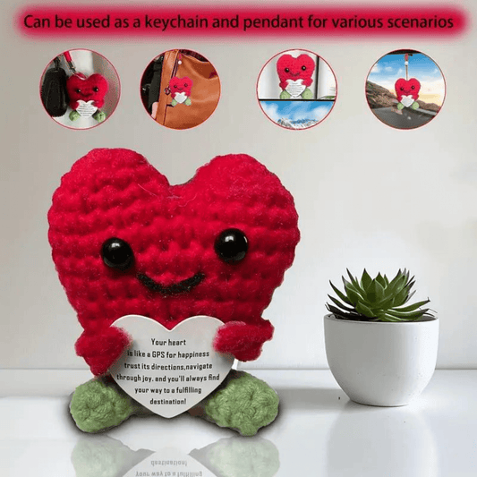 Handmade Crochet Heart Doll with Positive Card - Amigurumi Heart Shaped Doll